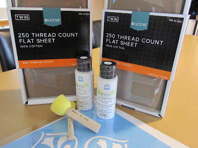 >I gotta say I LOVE taking sale sheets and turning them into curtains! I recently bought the same sale sheets at Target in the turquoise and did curtains for my little guy's room and a crib bedskirt. The stencil idea is not one I would have thought of though. I'll have to try that!