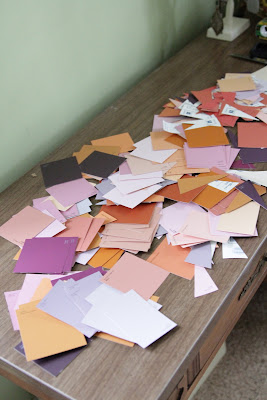 1. First of all, I recommend getting more paint chips than you think you’ll need. You’ll want to sort the chips into colors and then hues. I had all the lightest up top and worked my way down. That makes it easier to visualize what the final product will look like.
