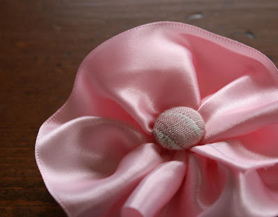 I made this little embellishment. I don’t know if there is a special way to make these, so I just fooled around until it worked. This is what I did. I sewed on the inside a loose gathering seam pulled it tight the spiraled it around a center point and secured it with a need and thread.