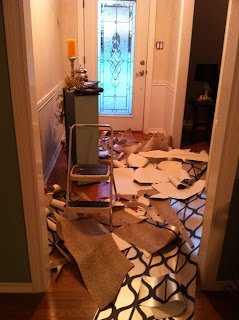 After a few weeks of an unfinished entry way, I still wasn’t sure what to do about the wallpaper. I had so many other projects going on at the time, I honestly didn’t have much time to even worry about it. The entryway stayed like this for a while until one day my impulses jumped in.