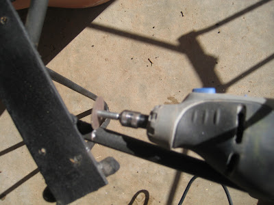 So, after all that wood working was done it was time to turn my attention to the base. The frame of the old coffee table was about 24″ x 24″. I decided that I would use my Dremel tool to cut the base down and weld a new, longer frame for my new table. I purchased steel flat bar and had them cut it to the length I needed, then just welded it to my existing legs.