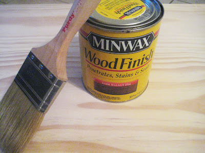Then we used wood glue to join the three pieces together to make the top. Can you believe wood glue is all we used? I didn’t think it would hold at first but it totally did! After that I finished it off with Minwax Provencal wood stain. I used a Purdy Paint Brush; I felt like it gave me a more even finish and it went quickly even though I had a large area to cover.