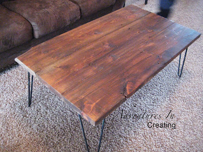 This all started when I bought this funky coffee table at the Goodwill for $20. I since used the top of that table to repurpose an old sewing machine, but still needed to do something with the hairpin legs.