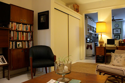 In just under one month, completed primarily after dinner, with the addition of a couple of weekend days, minus the day that John and Andrew went to the gun range, we have transformed a major part of our apartment into something far more livable and lovely. So… let the soul-wrenching, heart-crushing criticisms roll in. Online commenters- you know who you are.
