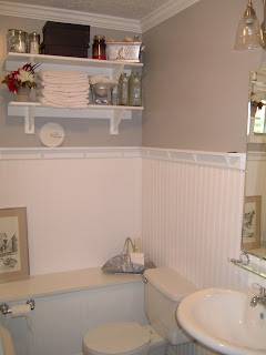 >I love this look for bathrooms. So much that I did tall beadboard in my downstairs bath as well! Great job.