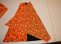 Step 8: Next, to continue on without a pattern, simply place the previously sewn piece face up on your cut fabric and cut along the edge. (see picture below) Notice I have both good sides facing up. That is how they will look laying flat out, so that is how you want to cut it.
