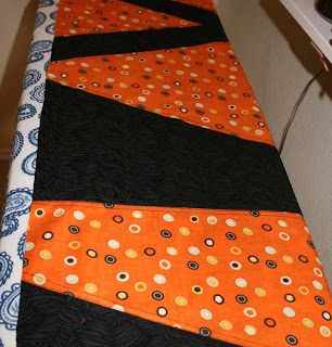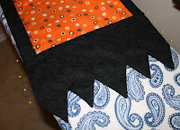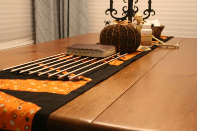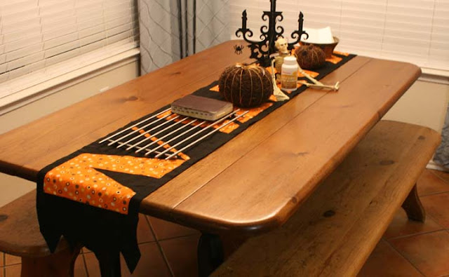 I put up the decor stuff in the front room and realized I needed something for the dining table. So, I made a runner. I pieced it together and have a new found respect for quilters! It is hard to get everything exactly flat! I had to pick out one too many seams!