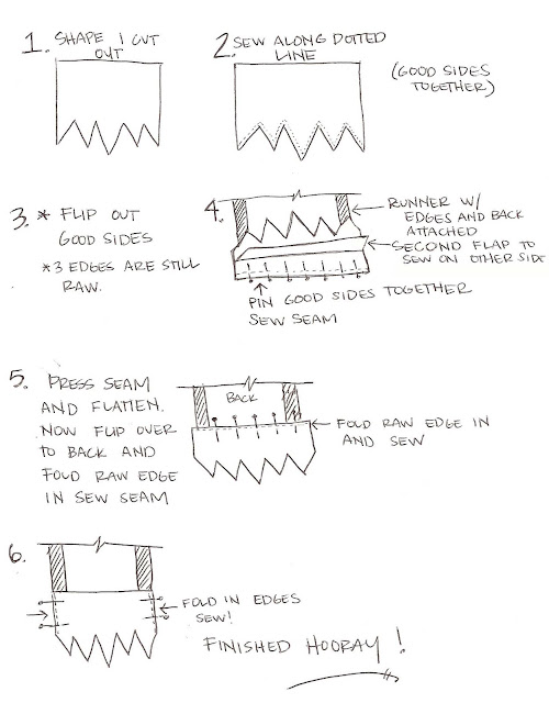 Step 9. Lay the new cut piece onto the runner, good sides together and sew the seam. Then repeat steps 5 – 8 till you get your runner to the length you want.