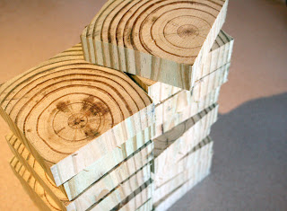 You need to decide on a good thickness to cut you scrabble tiles. I did mine at 3/4 of and inch, for a 4″ x 4″ that I had left over from our headboard project. You simply cut these slices from your wood, but be careful, Remodelaholic is not liable for your injuries…