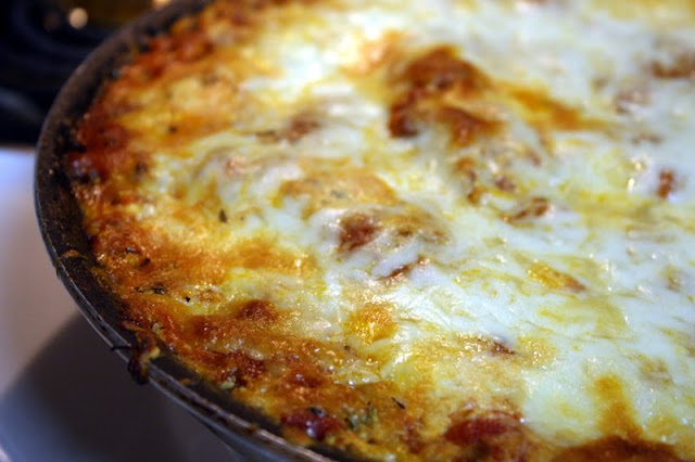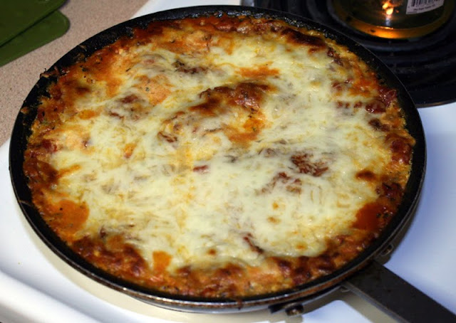 and cottage cheese mixture, and repeat. (it may also be nice to add some sliced black olives) Top with one cup Mozzarella.