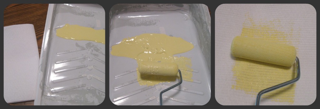 6. Prepare your brush by rolling into paint and removing excess on a dry paper towel. You could also roll right on for a faster, thicker coverage.