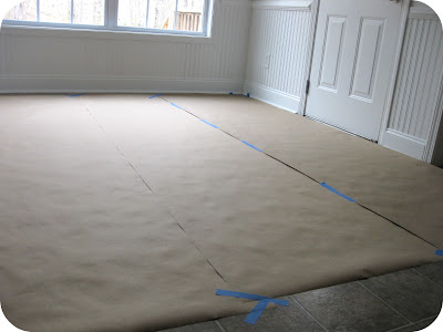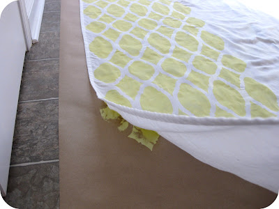 Step 1. Cover a large, flat working area with heavy paper to catch all paint that might bleed through. I used my breakfast nook floor.