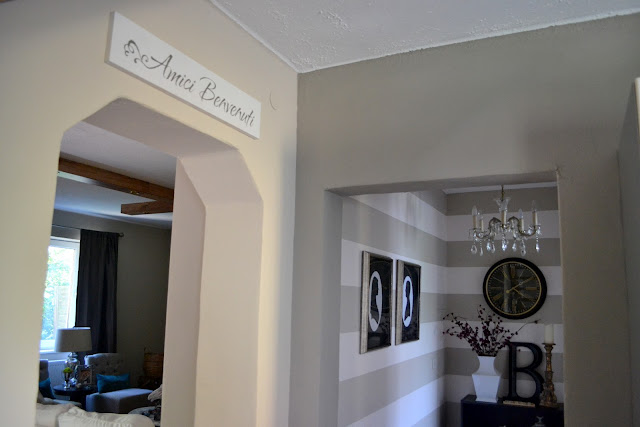 I made these silhouettesbefore we left California and really liked how they looked against the grey and cream stripes. I was only going to use the silhouettes temporarily until we printed off some images from our trips, but we ended up liking them so much in the hall, they may just end up staying there!