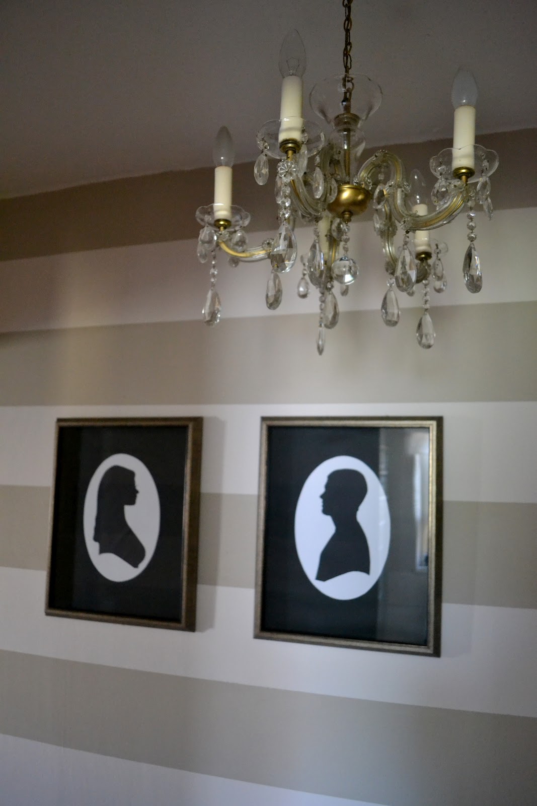 Check out how a beautiful hall can brighten your home. The striped walls, chandelier and framed silhouettes create an elegant and sophisticated look.