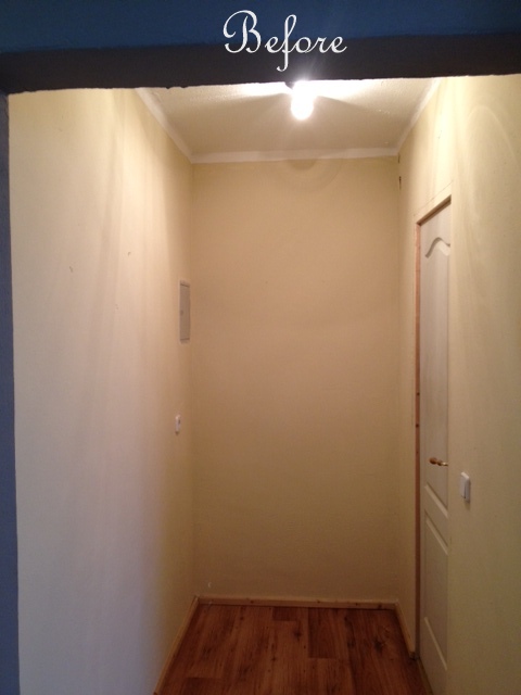 Our home is slowly coming together since we received our things this past week! One of the rooms that is completed, for now, is the striped hall. To learn how to do the stripes yourself click here. Our front door opens directly into our kitchen and there isn’t a lot of space for storage at all. We decided to turn the hall that leads from the kitchen to the bath into a welcoming little walkway with storage for shoes, gloves, umbrellas and as a display for some of our funky finds. I realized there were many things that we were going to have to purchase for our home. Instead of spending money getting pictures printed and a new table for the space, we decided to use the things we already had. It’s all about re-purposing the junk you already have, my dear friends! Our home will always be a “work in progress,” I enjoy discovering and collecting things along the way.