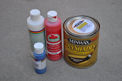 To give the board an aged look, rough up the edges with sand paper. If you want it really antiqued you can get out the electric sander. Once it’s roughed up as much as you want, add the polyurethane + stain shown in the picture above of the paint. I like to dip a rag into it and rub it on to my liking.