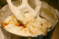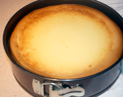 Now brush the side of the pan with some more butter, and set the pan on a rimmed baking sheet. Pour the filling into cooled crust, place in oven at 500 degrees and bake for 10 minutes. Without opening the oven door, after the initial 10 minutes, reduce the temperature to 200 degrees. Continue to bake about an hour, until a thermometer inserted diagonally at the souffléd edge into center of cake registers 150 degrees after baking at 200 degrees for at least an hour. (depending on your oven it may take up to 1 1/2 hours to reach the proper internal temperature, mine was less in this hot oven!)