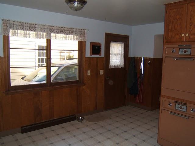 See, I told you it was real professional like. It’s hard to explain to people through pictures what we did but we basically moved the kitchen into this useless funky room that had a fireplace and then we tore out the old kitchen and that’s where our kitchen table, pantry and mudroom are located. We had to move the exterior door, put in a sliding glass door and used our fireplace for our oven.