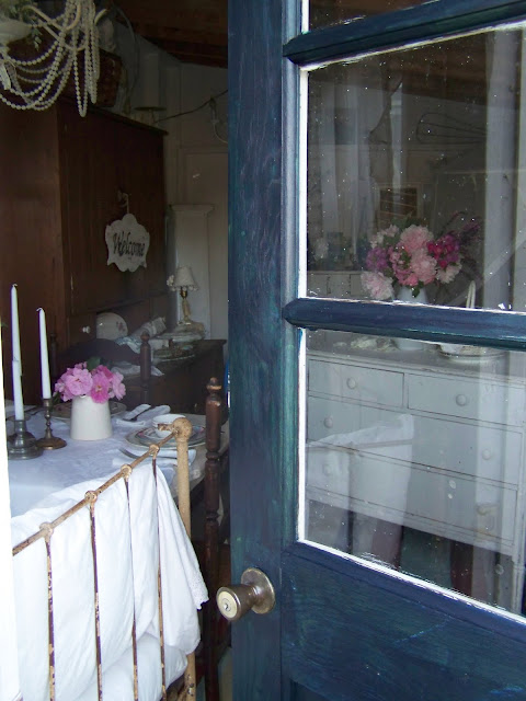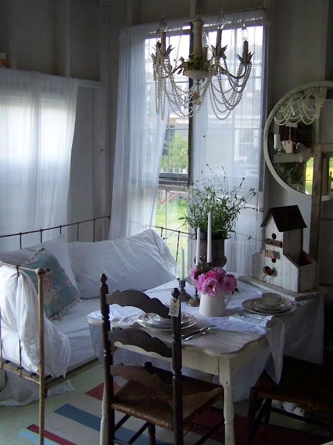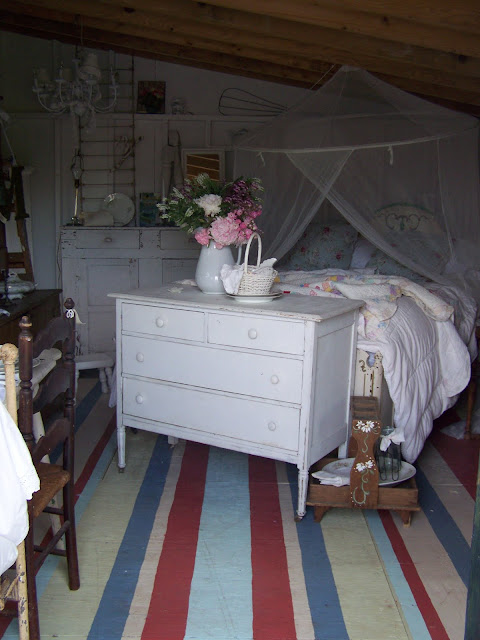 I must tell you I had the most fun working on this shed because there were no boundaries or limits as to what I could do with it. Once Mr. M. saw that I was not going to give up and just simply put a bed in it.