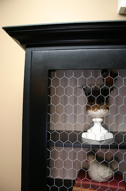 >Wow! What a transformation! And although it sounds like the chicken wire was a pain, it was totally worth it 'cause it looks great! I love that you added the crown molding to the top, too. I wouldn't have done anything differently!