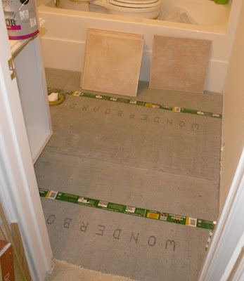 Okay, so the reason for all those pictures of me and the drill is the cement board installation.