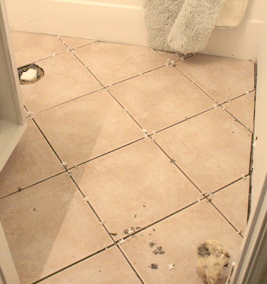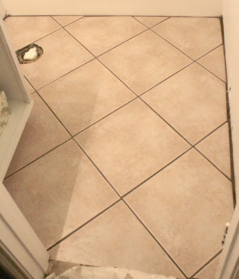 >I LOVE the diagonal! It's pretty tricky to do in such a small space but I think it's totally worth it. What size tile did you guys do? Doing the floor in our kitchen was our first tile job and we learned quite a bit. Hopefully we'll get to redo the bathrooms before we have to move so I'll have to revisit these posts so I remember what to do. 🙂
