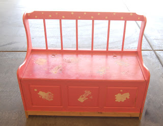 I picked this toy box up for $6 at the thrift store a few weeks ago. I liked the design and knew I could make it adorable. =)
