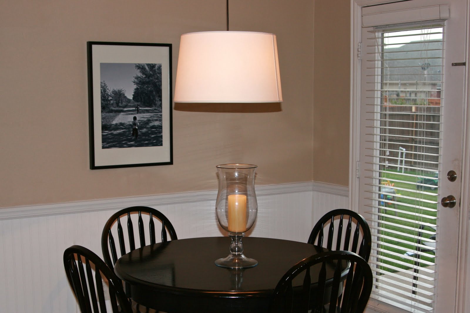 And I was going to do a big picture gallery wall behind my table but I am actually loving the simplicity of this pic I took of my two little angels running down a dirt road… and blown up and printed at Kinkos for under $20…