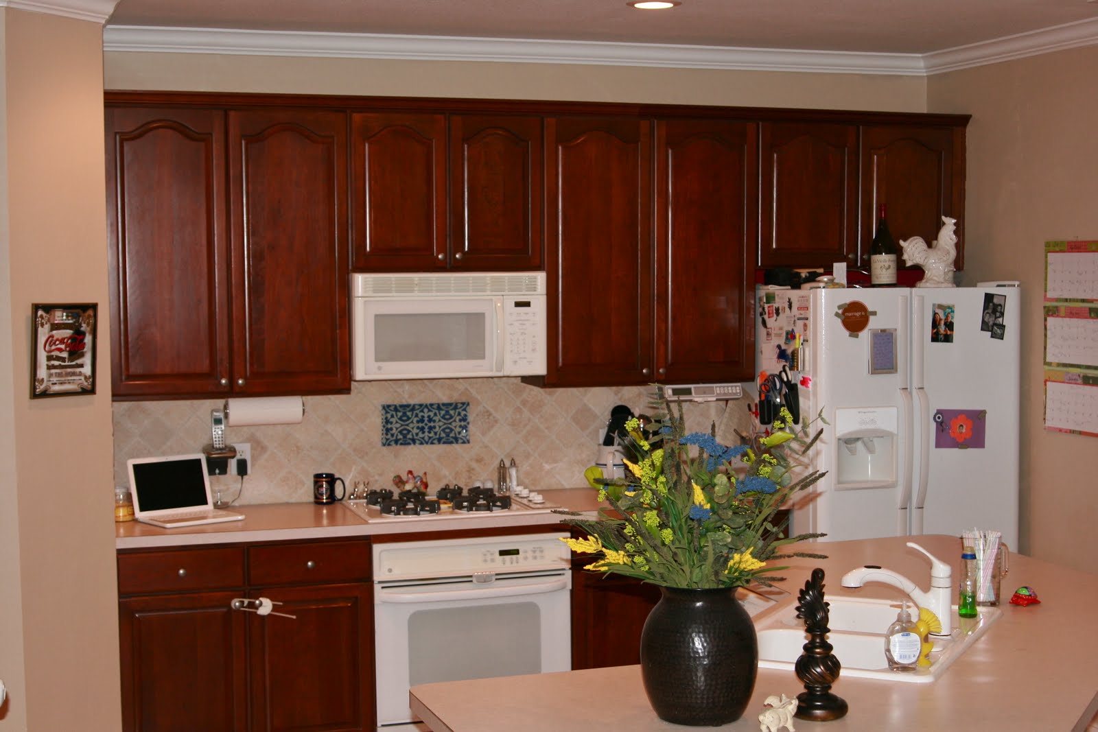 And that is the end of the novel!! congrats if you made it!! I Hate it because it almost killed me LOVE my kitchen!! it was never horrible with that wallpaper but with no windows and dark cabinets it was always too dark and now it is light and feels so much bigger! even the Hubs was skeptical but is now totally thrilled that it was done… by me… that he didn’t have to do it…. and he didn’t have to pay for someone else to do it… and that I won’t be talking about it anymore! yay!