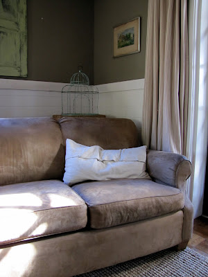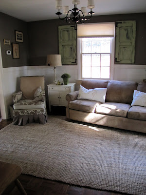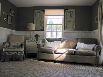 Love the whole room, it is completely transformed! The wainscoting makes the wall color pop and those shutters look fab with the simple blind treatments.