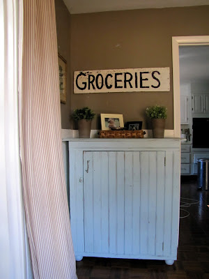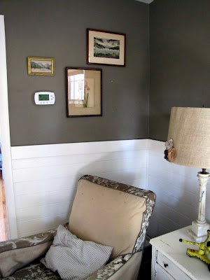 You can see a peek of red wall paper below the sign from before the bead board was installed.