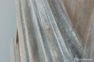 If I’m adding more of a solid on top of another paint coat, it’s usually because I want the base layer to peek through…sand with a medium grit sanding block in a circular motion…This will give you that “grainy” distressing you see in this picture.