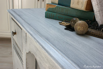 I use the technique for depth of tone, but also to improve the natural finish. Washing directly over the wood can take away that yellowed tint older pieces tend to take on. Because I wanted both of these pieces to have time-worn or paint-aged patina, I also dry brushed white on top of the wash.
