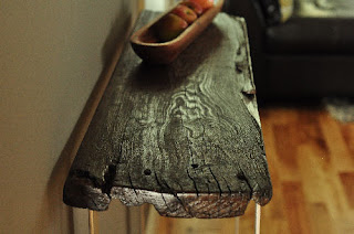 I have had a few different ideas floating around in my head for a console table for a while now. I never could seem to settle on one plan though. Then one day my mom and dad were cleaning out their shop and came across a piece of old barnwood. Rather than burn it they decided to check if I wanted it first. YES PLEASE!