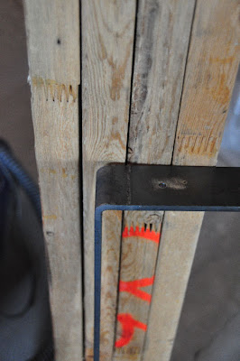 Next came the metal base. Although learning to weld is on my bucket list of things to do, and my father even has a welder in the deep recesses of his storage shed, I wasn’t confident that I would be able to get the corners matching and the seams, well seamless, on my first attempt. So off to the local welding shop I headed to get a quote on two metal bases, 35″ in height, and 10″ in depth, using 2″ wide heavy metal. After a quick calculation in his head he decided he could keep the total under $100. After I committed, he asked how soon I would need them. I desperately wanted to say immediately, however, my honesty had me replying that it was just a project for my home so there was no real rush. 2 hours later I received a call that my table legs were ready!!! He ended up being held up waiting for material on a big project and it was the perfect little filler job. The price was bang on $100. Not the least expensive legs in the world but many of the other options I was pondering in my head would have came to at least that. And each base was perfectly matching, and the seams were smooth!!!