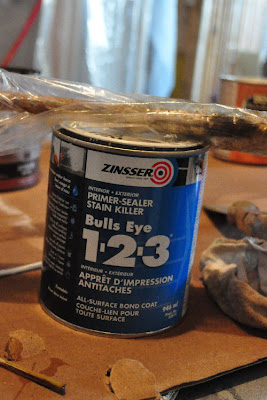 I sanded the bases with 120 grit sandpaper and then primed them with Zinsser Bulls Eye primer. I painted it on but I would recommend using spray primer. I just didn’t feel like forking out more money and I already had this primer at home. So I carefully sanded between each coat of primer 3x.