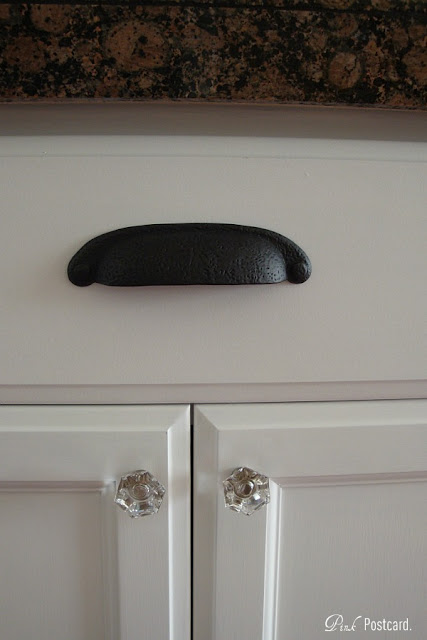 I have always loved the combo of bronzed pulls and glass knobs, and I finally have them!